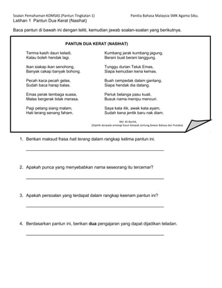 Contoh Latihan Pemahaman Tahun 1 Berikan Respond